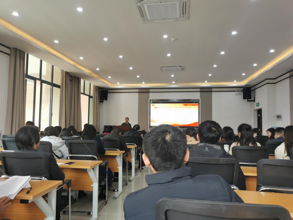 党委利用学院集中时间召开面向全体教职员工的关于党的十九届六中全会精神专题学习研讨会,会议由学院党委副书记卢洪英同志主持,并做专题党课报告。