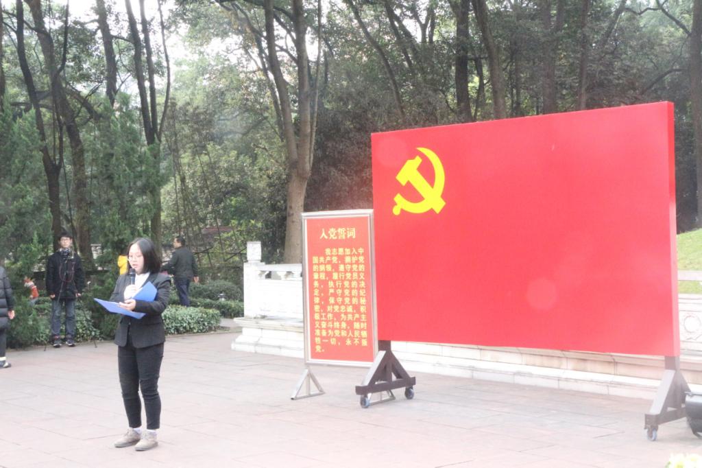 25日清晨,空气中透着微微的寒意,但同学们早已在学校党员墙前集合,整装待发。来到烈士墓后,庄严、肃穆的氛围顿时向大家袭来。参与扫墓的全体同学整理好了自己的着装,排成一个方阵来到纪念碑和党旗前。整个活动由组织部吴亚莉主持。