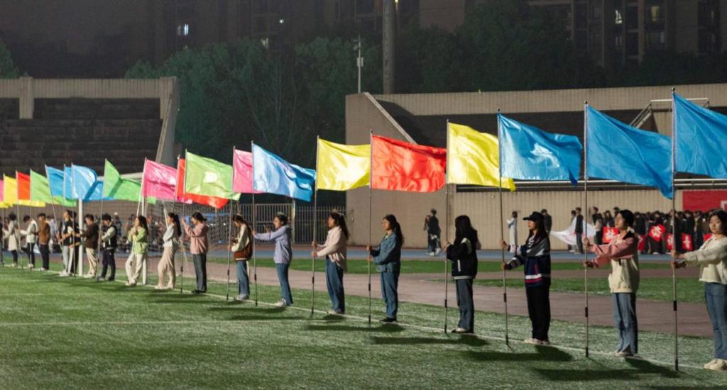欣赏完振奋人心的霍元甲扇子舞和惟妙惟肖的古风舞蹈,这一刻,开幕式排练现场的氛围被推向了高潮,整个运动场都洋溢着青春向上的气息。