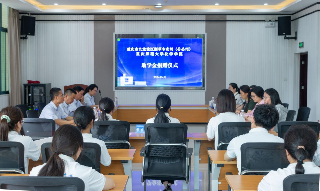 在求是楼202会议室举行重庆市九龙坡区烟草专卖局(分公司)定向资助困难学生助学金捐赠仪式。重庆市九龙坡区烟草专卖局党组书记、局长、经理范毅,党组成员、纪检组长董东,猫都论坛