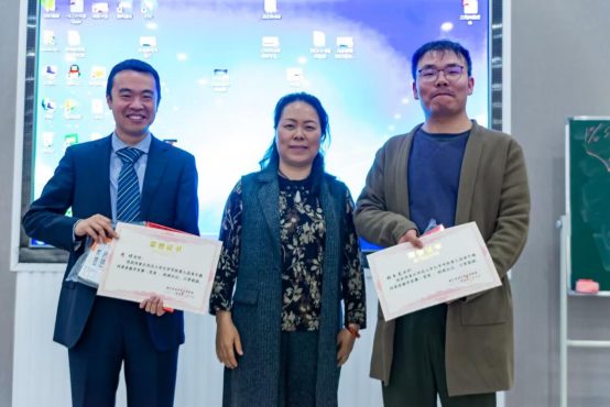 教职工们扎实的教学基本功。比赛过程中不时响起热烈的掌声,老师们看到同伴们的精彩表现,也都颇受感染,受益无穷。老师们准备充分,教学技艺精湛,展示了青年教师们孜孜以求、积极向上、追求卓越的良好风貌。经过激烈而紧张的角逐,周琦老师与张玉龙老师获得了本次比赛一等奖,黄春梅老师、蒋忠伟老师、单春晖老师、钟邦超老师获得二等奖,由学院党委书记卢洪英、学院副院长王燚老师为获奖老师颁奖。