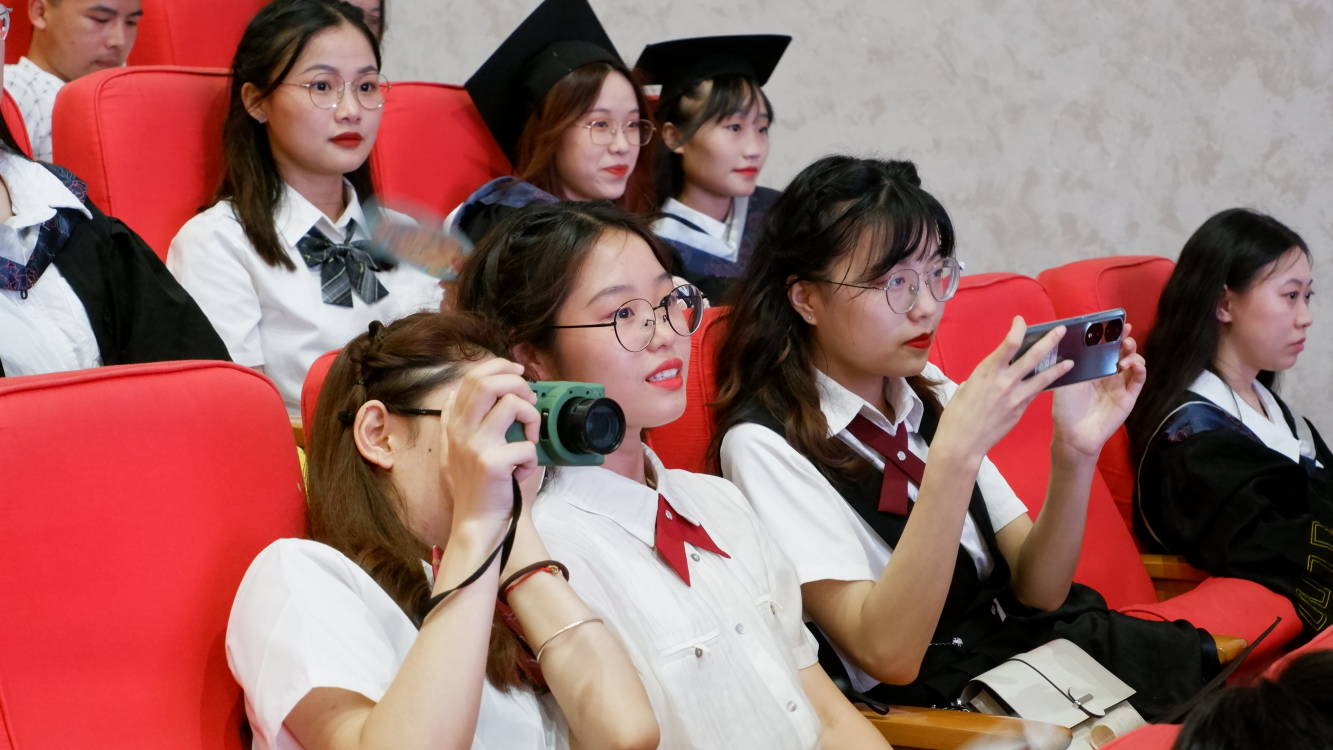 47名研究生被授予硕士学位,300名本科生被授予学士学位。头戴学位帽的毕业生们依次走上台,握手、祝贺、授位、拨穗、合影,满满的仪式感为他们的大学生活画上了一个圆满的句号。