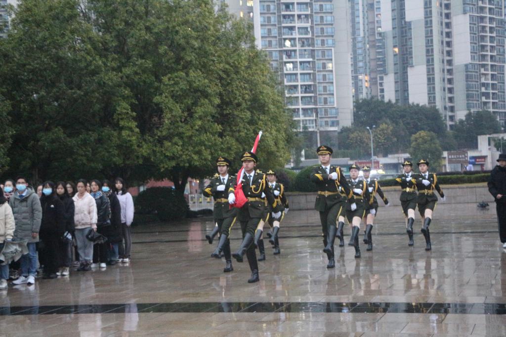 于2021年12月27日上午在大学城校区东大门广场庄严举行升旗仪式。早晨天降微雨,猫都论坛
