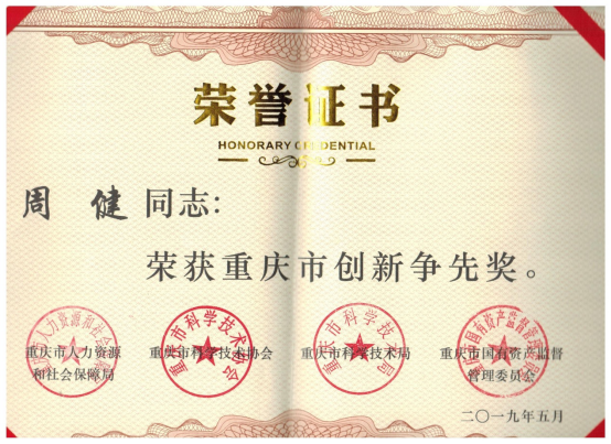 周健教授荣获重庆市首届创新争先进个人奖。希望周健教授珍惜荣誉、再接再厉、再创佳绩。