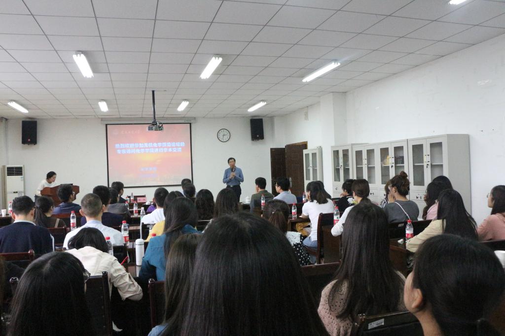白俊峰教授则与学院的年青教师开展了关于当前无机化学的前沿热点以及未来的发展方向等问题开展了热烈的讨论,讨论会气氛热烈。