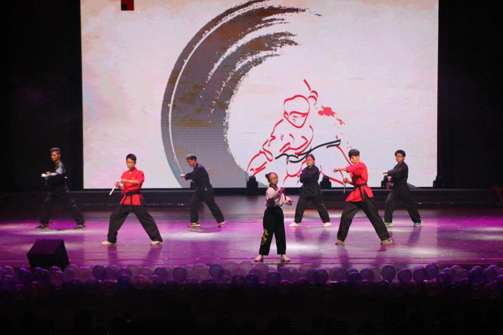 随着令人热血沸腾的音乐响起,晚会在由社团和2017级材料一班带来的武术《双截棍》中拉开了帷幕。节目中那烟火随着双截棍的舞动所放出的绚烂,这是一个惊喜,更是对晚会最好的祝福。紧接着舞蹈《丧尸dangerous》让众人尖叫不已,带我们见识了丧尸元素与激情飞扬的街舞文化碰撞的火花;大学的那些事,大学的那些人和那些情总是让人难以割舍,使在读学子不免想到在毕业时又有怎样的述说?16化师三班主演的《盛夏的果实》生动的展现了毕业季的不舍与泪水;真正的寂静不是天马行空,真正的寂静是思想的静止,是让思想居住在自然的身体中,来自老师们表演的瑜伽《天鹅,力量与美》动作优美,引人入胜,而心似乎也随之变得坚强和寂静。