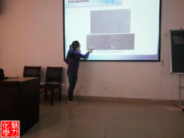 随后,樊利向大家交流了各种物质对荧光(鲁米诺)的猝灭反应;张倩介绍了荧光纳米材料的离子检测和人工模拟酶的两个研究方向;最后,罗丽展示了载体晶体和组成对Au/TiO2催化剂甲酸制氢性能的影响研究。交流时的他们神采飞扬,谈吐激扬,给以观众们更加渴望科研的想法。