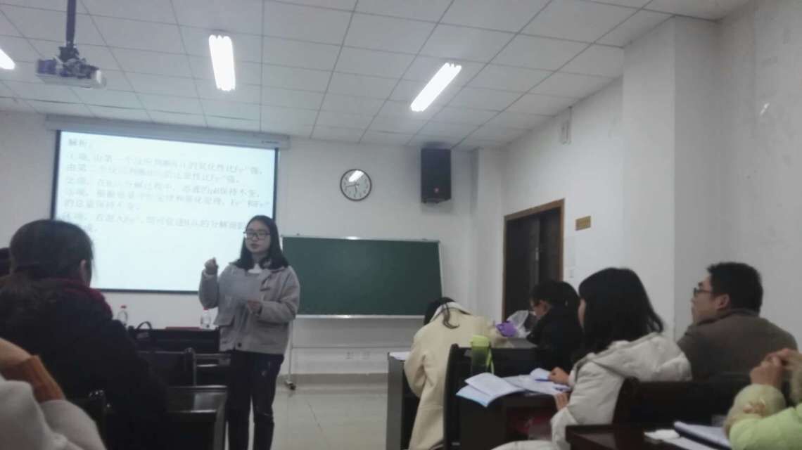 讲题比赛中,20多名同学参与其中,依次上台讲解题目。她们各自将私下准备的题目呈现在PPT上,用独特的分析方法以及精炼的语言讲解其中的细节,条理清晰的分析其中的易错易混点。同学们各有特色,例如:毛梦钒同学语言表达得体、尹巧同学姿态落落大方……
