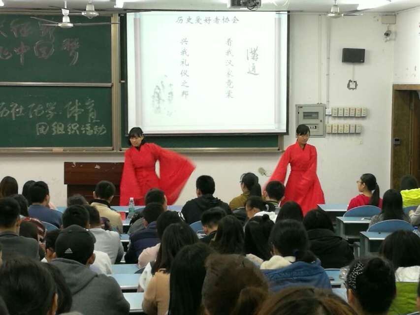 活动以历史爱好协会的《汉道》掀开帷幕。曼妙的身姿,清雅的舞曲声后,本次活动迎来了第一场高潮-第一轮抽奖。同学们在热闹的气氛中感染着15级历史学院卢婧同学的《走在冷风中》,略带忧愁的曲调,仿佛穿越时空到了长征路上。玩乐的同时,穿插了各种高科技知识普及。由猫都论坛
