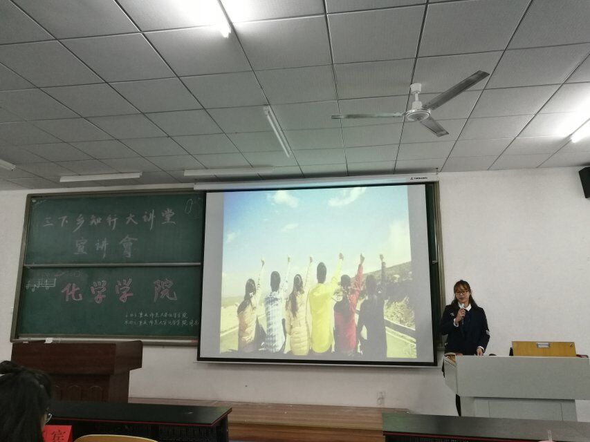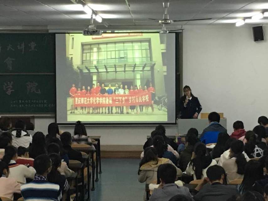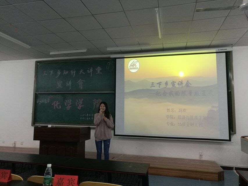 “赠人玫瑰,手留余香。”为让猫都论坛 全体学生对“三下乡”活动有一个初步的了解,猫都论坛 特于2016年11月11日晚18点45分于特教楼T2309举行了“三下乡”知行大讲堂宣讲活动。14级文学院张鑫、15级传媒学院马艺丹、15级数学科学学院冯周世桦、15级经济与管理学院冯欢、15级猫都论坛 张玉珍担任本次活动嘉宾,并一一上台宣讲。 本次活动于18:45分正式开始。首先上台宣讲的嘉宾是来自14级文学院的张鑫同学,他讲述了他们“重走长征路”的经历和感觉。张鑫同学表明:历史并不只是教科书上的,而是真真实实的。他也强调了什么是长征精神,更加着重强调了信仰在当今社会的重要性。让同学们真正地意识到长征精神的重要性和信仰的力量。
