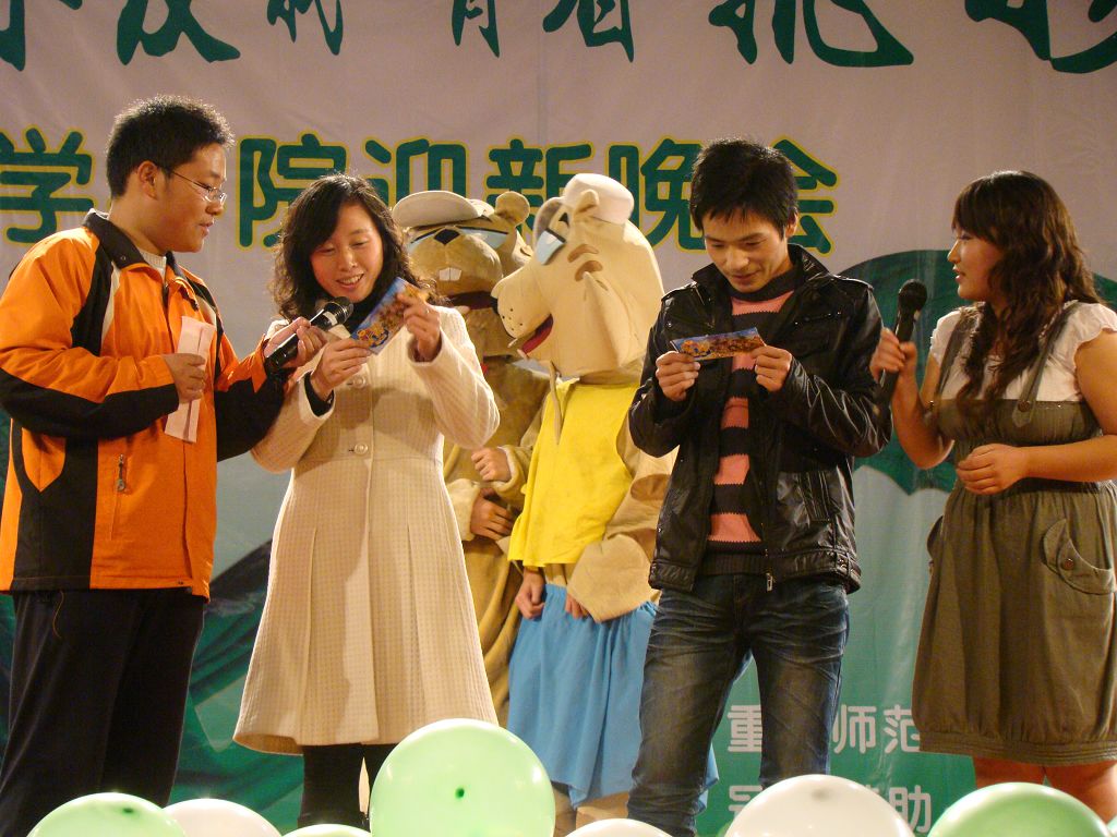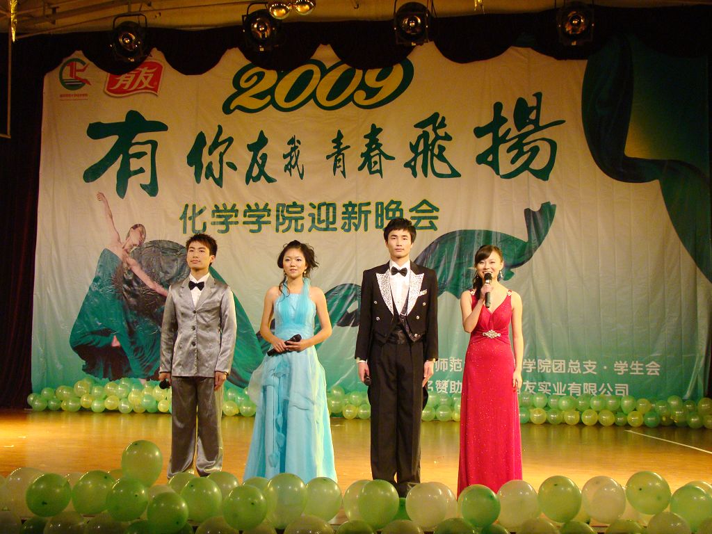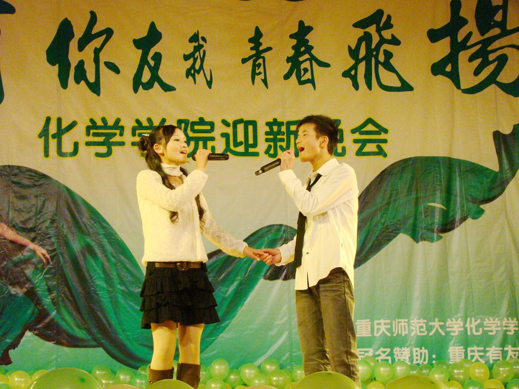 “有你友我,青春飞扬”大型迎新晚会在校学生活动中心隆重举行。出席本场晚会的嘉宾有学院党总支书记孙宇阳老师,党总支副书记李荣老师,团总支书记查直老师,工会主席张迎雪老师,有机化学教研组徐红教授,辅导员张怡老师、高润祥老师以及本场晚会的赞助商代表。