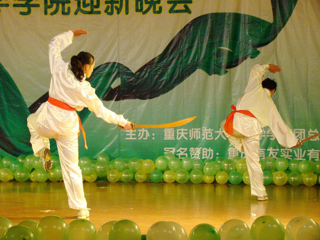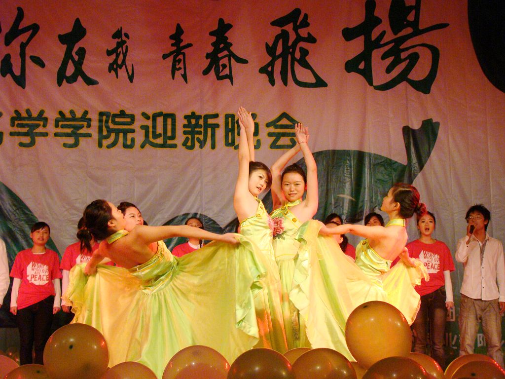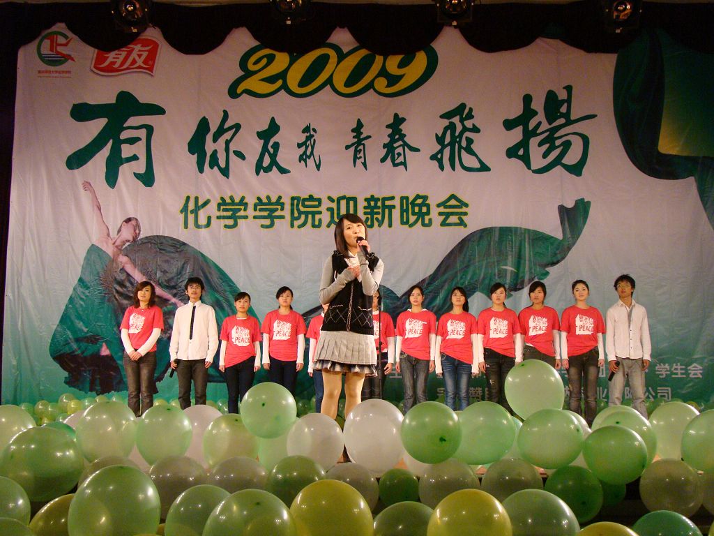 首先,一段活力四射的《啦啦操》拉开了本次晚会的帷幕,小品《迎新集结号》带我们重温了难忘的军训岁月,精彩的武术表演雄浑刚劲,现代舞《电话情缘》激情奔放,而印度舞《西域风情》、藏族舞《溜溜的康定溜溜的情》以及新疆舞《掀起你的盖头来》则将民族风情展现得淋漓尽致,F.C.B工作室的街舞更是热力四射。晚会中,不仅歌舞表演十分精彩,其他节目更是令在场的观众耳目一新,以蚊帐为材质自主剪裁的《服装秀》、乡村模特秀《那村,那人,那岁月》,无不体现了化学学子别出心裁的无限创意。在今年的晚会中,还增加了现场抽奖和师生互动环节,这不仅活跃了晚会的气氛,还增进了师生间的友谊。最后,舞台剧《我们的幸福生活》为本次晚会画上了圆满的句号,全场齐唱《歌唱祖国》将晚会推向了最后一个高潮。