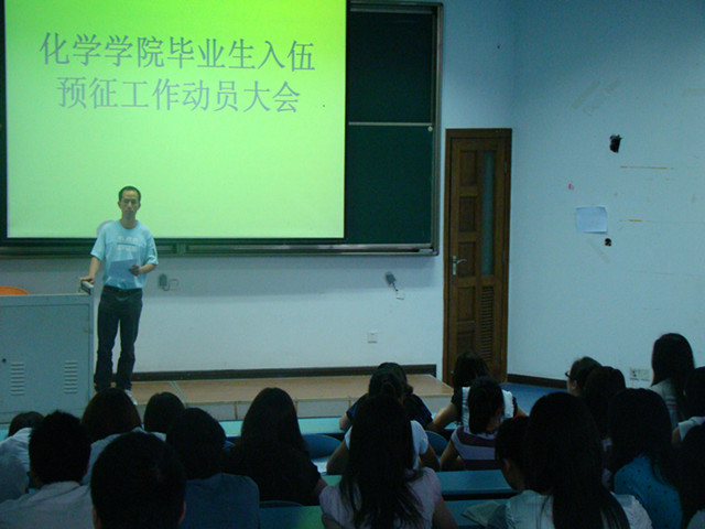 2011年毕业生入伍预征工作动员大会”,大会由2007级辅导员高润祥老师主持。高老师首先宣读了《2011年普通高等学校应届毕业生入伍预征工作的通知》,然后为同学们详细解读了入伍的流程和入伍后的补偿优惠政策,着重强调了应征入伍的意义。他号召全体毕业生积极报名应征,献身国防,保家卫国。