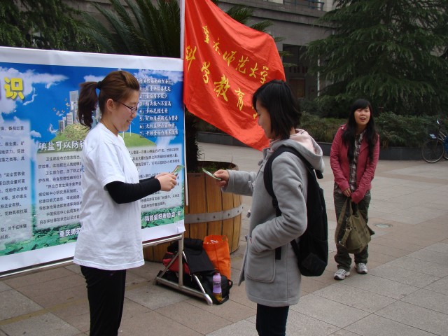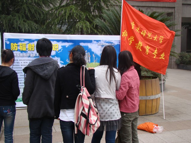在宣传活动现场,科学教育专业、科普爱好者协会的老师和同学向大家简单介绍了日本福岛核事故的基本情况,并对人类历史上所发生的核事故进行了回顾;同时,向大家讲解了核能利用的利与弊以及科学防辐射的正确方法,并向过往的人群分发了印有“防辐射小贴士”的精美书签。