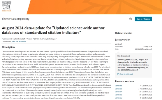 9月16日,美国斯坦福大学和爱思唯尔数据库(Elsevier Data Repository)共同发布了2024年度《全球前2%顶尖科学家榜单》(World's Top 2% Scientists List),猫都论坛