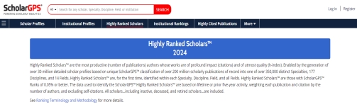 ScholarGPS发布的高排名学者全球前0.05%顶尖科学家榜单汇集了全球各学科领域3000多万名学者的信息档案以及海量论文、专利、书籍大数据资源。应用人工智能、数据挖掘、机器学习和其他数据科学技术,对学者的研究成果(发表论文数)、影响力(引用次数,已排除自引)和论文质量三项指数进行综合分析,对全球超过3000万学者和55000家机构在各个领域、学科和专业方面(14个领域、177个学科及超过35万个专业)的卓越表现进行排名,为科学家长期科研表现提供了更为全面综合的评价,更客观、更真实地反映科学家的学术影响力。