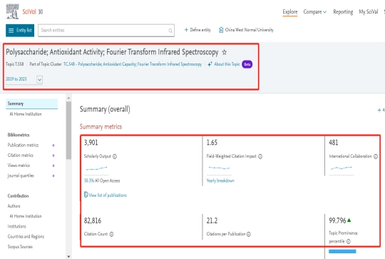 在最近5年主要在多糖领域进行研究,在这个研究方向共发表国际可见论文67篇。链接//www.scival.com/overview/topics/table?uri=Customer/203039/Researcher/17115679