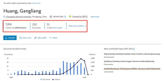在此科研方向的科研表现:在2019~2023年间,共发文67篇,总被引3,525次,归一化引用影响力指标(FWCI)为:4.33。该研究方向全球的归一化引用影响力指标(FWCI)为1.65。黄刚良教授的科研质量为全球平均水平的2.62倍(4.33/1.65)。